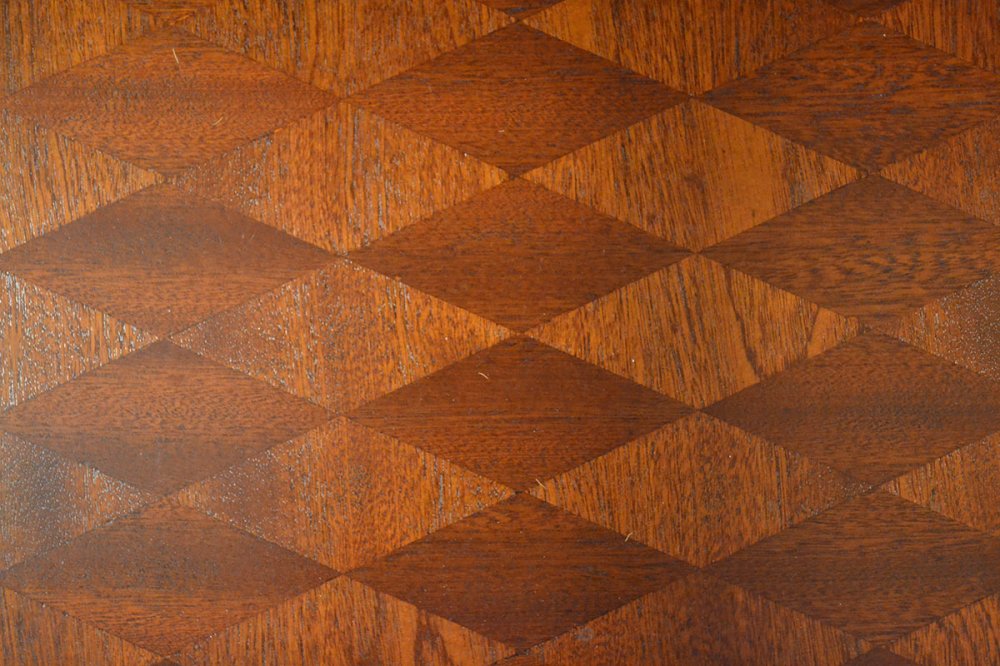 Beschreibung: mit Intarsie aus Sipo-Mahagoni, Sapeli-Wurzelholz, Ebenholz, Ahorn u. a.