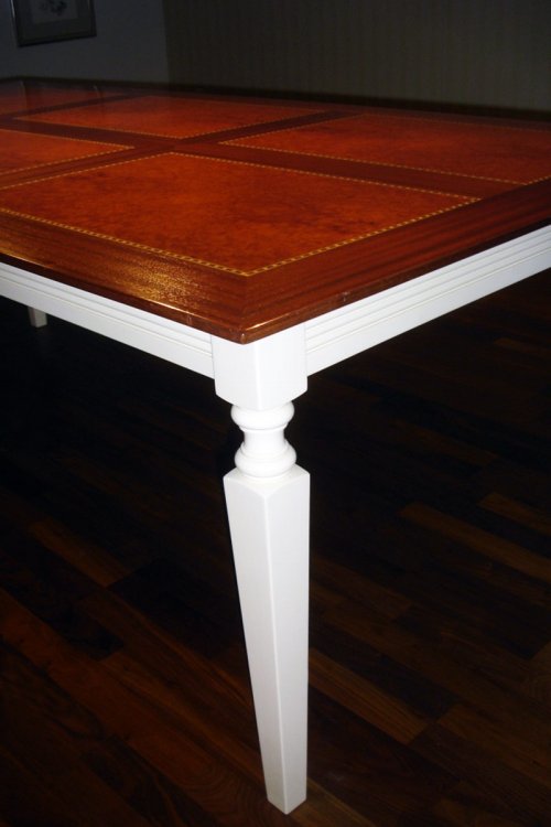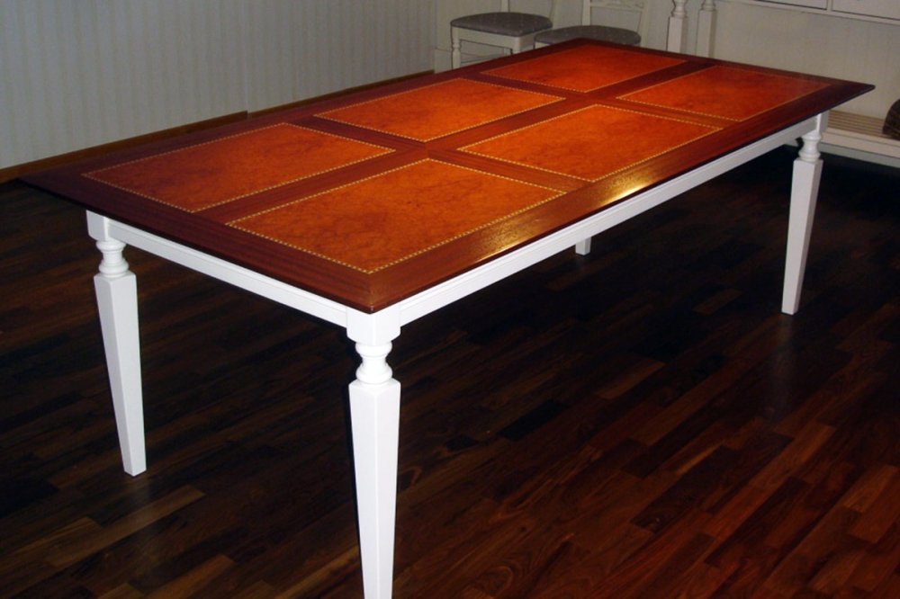 Unser Sideboard mit Stilelementen des italienischen Landhauses wurde von uns entworfen und mit hohem handwerklichen Können umgesetzt. Auf der Oberseite der Platte wurden hochwertige Intarsien eingearbeitet. Die Dimensionen sind frei wählbar, um genau für Ihr Wohn- oder Esszimmer zu passen. Als Kollektion bieten wir das Sideboard sowie den Tisch nun zum Verkauf.