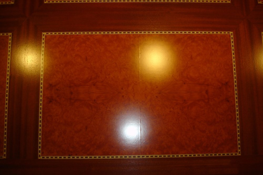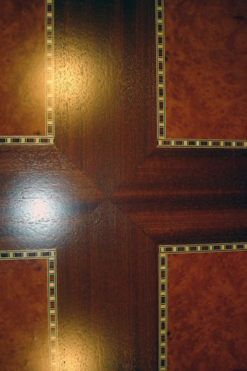 Beschreibung: mit Intarsie aus Sipo-Mahagoni